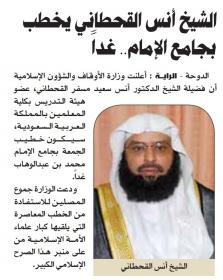الشيخ أنس القحطاني يخطب بجامع اﻹمام غدا