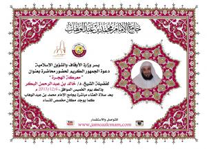 وذلك بعد صلاة العشاء بجامع الإمام محمد بن عبدالوهاب لفضيلة الشيخ .د/ ( خالد بن عبدالرحمن البكر )
